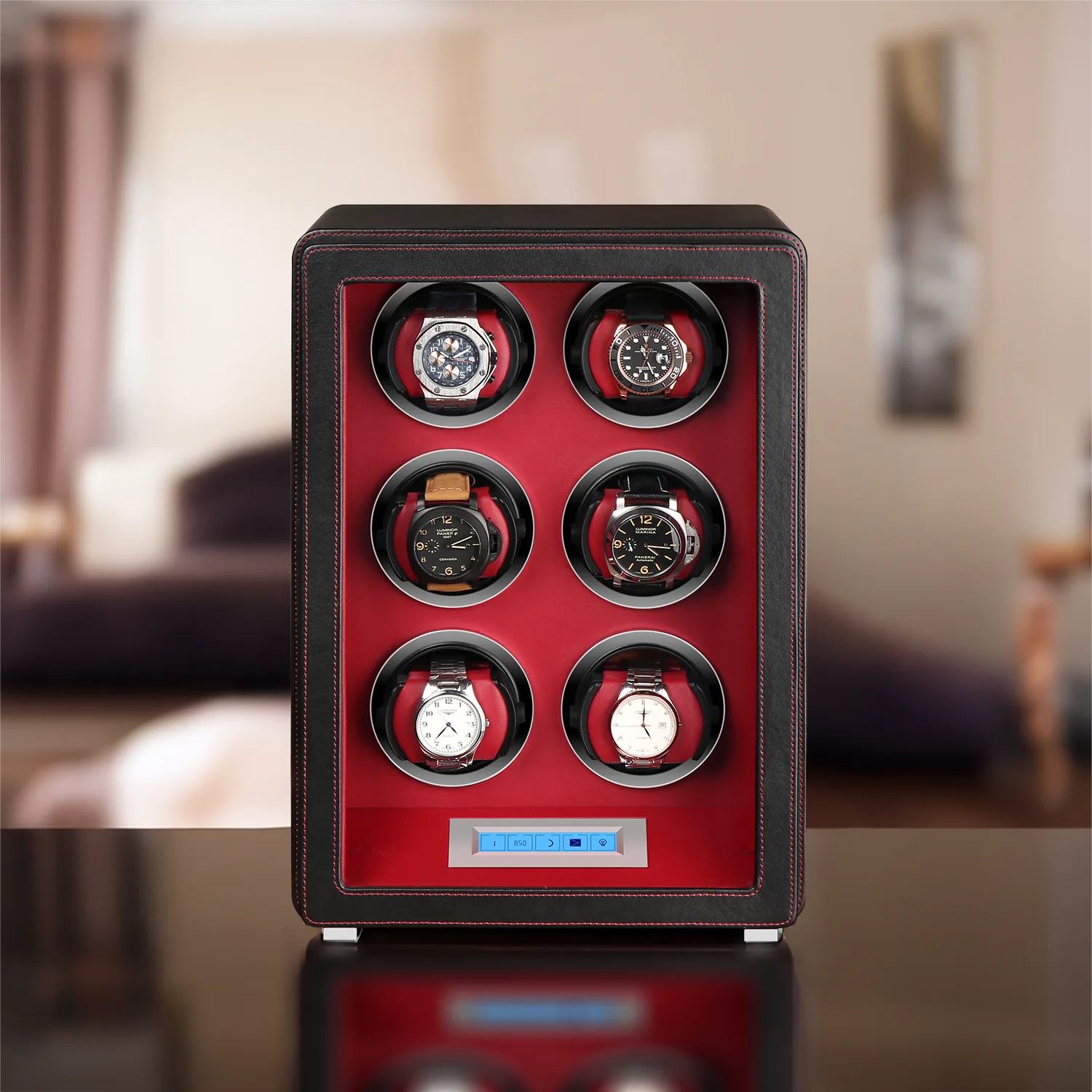 - The LED Light Stripe provides clear visibility of the watch winder and the watches inside.